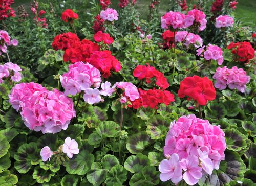 Pelargoniums, or geraniums, originate from South Africa and are known for their lush flowers, often consisting of several small flowers on one stem that together form a flower cluster. This type of geranium is widely used as a balcony, pot and bedding plant. They have a long flowering period and bloom with colourful, full flowers.